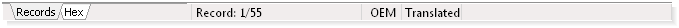 This status bar has view mode switcher and shows how many records are found, the current character set (OEM/ANSI) and the current dispalay format (Raw/Translated). Also, you may set view modes through 'View' main menu item. If you set Raw output, the data will show as it is stored in the file.